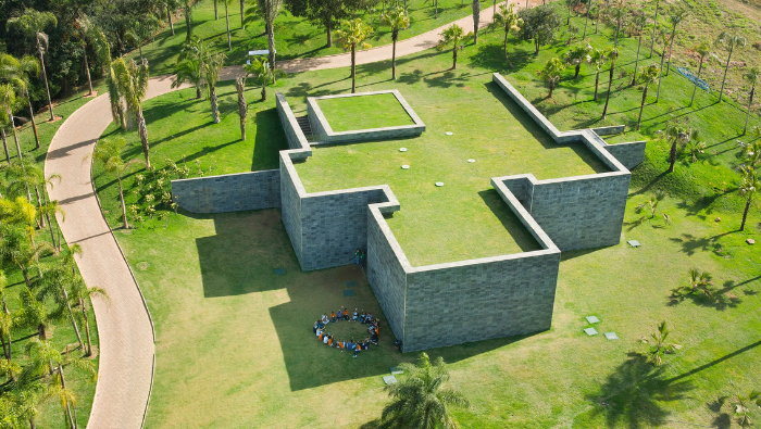 Resolvi conhecer o Inhotim depois de ver no Instagram as fotos de um amigo que tinha feito essa viagem recentemente. Olhei para aquele lugar, por meio da tela do celular, e me deslumbrei de repente. Um tempo depois, organizei o passeio para ir com minha família, e me lembro como se fosse hoje da sensação de entrar na Galeria Claudia Andujar (G23) pela primeira vez. As luzes, a sombra, o corredor que nos leva até a primeira sala, os tijolos… era tudo feito de uma forma muito especial para abrigar um trabalho tão potente como o dela. No último carnaval, dois anos depois dessa visita, decidi voltar para colocar em prática um projeto pessoal: escrever conteúdos sobre arquitetura para compartilhar com quem gosta no meu site. Não existia nenhum lugar melhor para começar a costurar palavras sobre projetos que admiro.