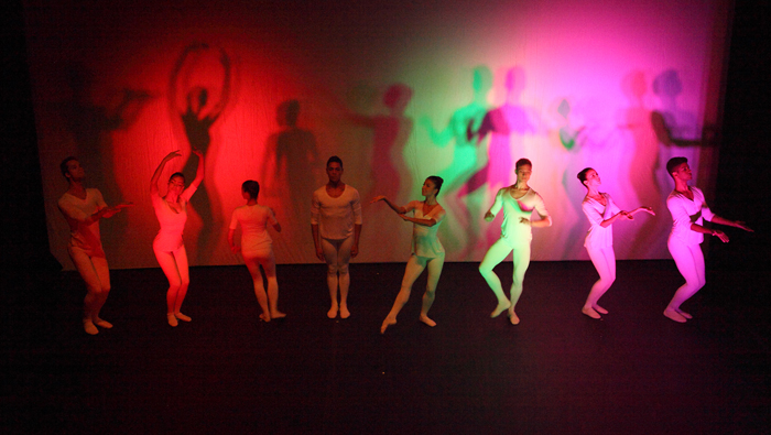 Por fim, vimos Sonakinatography Composition III. A performance mescla dança, luz e som em uma combinação de movimentos e tempos rigorosos, acompanhados de música também executada com base nas partituras de Horwitz. Nessa performance as luzes coloridas projetadas sobre os corpos dos bailarinos, mesmo seguindo um ritmo matemático, acabam por destacar o engajamento com o aqui e agora o fantasma do infinito do mundo dos algoritmos se concretiza em cor, luz e movimento durante as performances. Como comentou uma das pessoas do público ao final da apresentação, a união de movimento, cor e luz formou diante de nós uma espécie de alfabeto, algo novo para inspirar nossa observação da obra de Channa Horwitz.